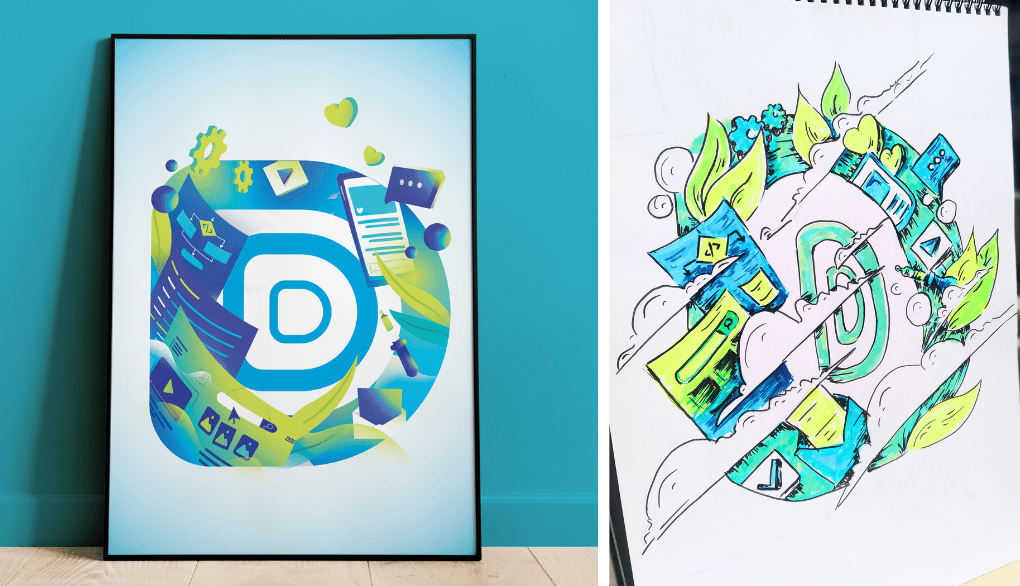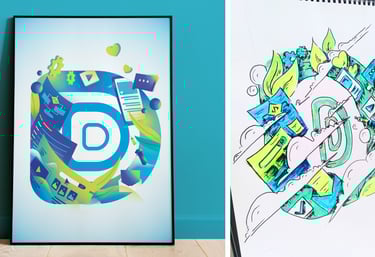 A digital illustration for Deveoo, inspired by the raw energy of street art and high-contrast tech colors. By integrating web components directly into the letterform, this design represents the fusion of creative coding and urban aesthetics.